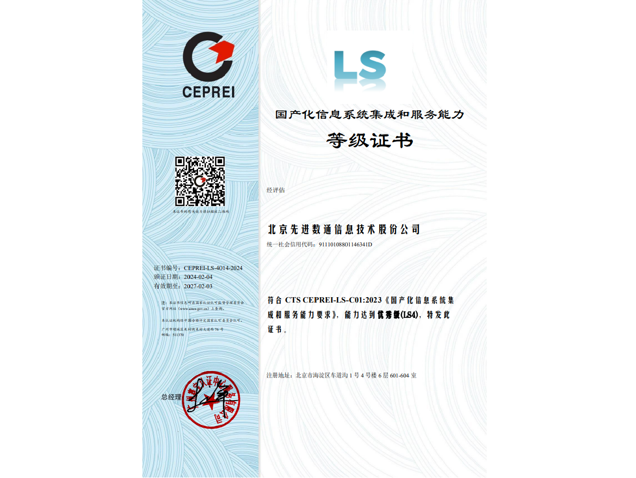 东升国际 东升先后取得CMMIL5、软件能力成熟度五级(SPCA 5)、信息系统建设和服务能力评估体系(CS)5级、ITSS成熟度一级、信息系统安全集成服务资质二级、信息系统安全运维服务资质二级、国产化信息系统集成和服务能力评估四级(LS4)、北京市企业技术中心等资质认证,并取得ISO9001、ISO20000、ISO27001、ISO14001、ISO45001、ISO22301、ISO37001、ISO28001、GBT29490、SA8000等标准体系认证,具备行业领先的技术开发、工程实施及服务保障能力。