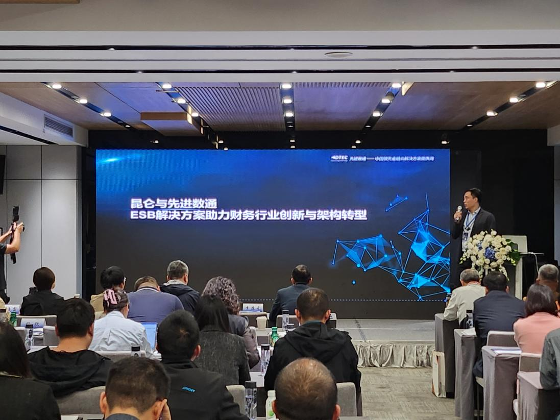 东升国际 东升代表讲师郭钰以《昆仑与东升国际 东升ESB解决方案助力财务行业创新与架构转型》为主题作发言分享。他深入剖析了当前财务行业IT架构面临的挑战,包括系统孤岛、技术老旧、扩展性不足等问题,并提出了基于企业服务总线(ESB)和微服务架构的转型方案。